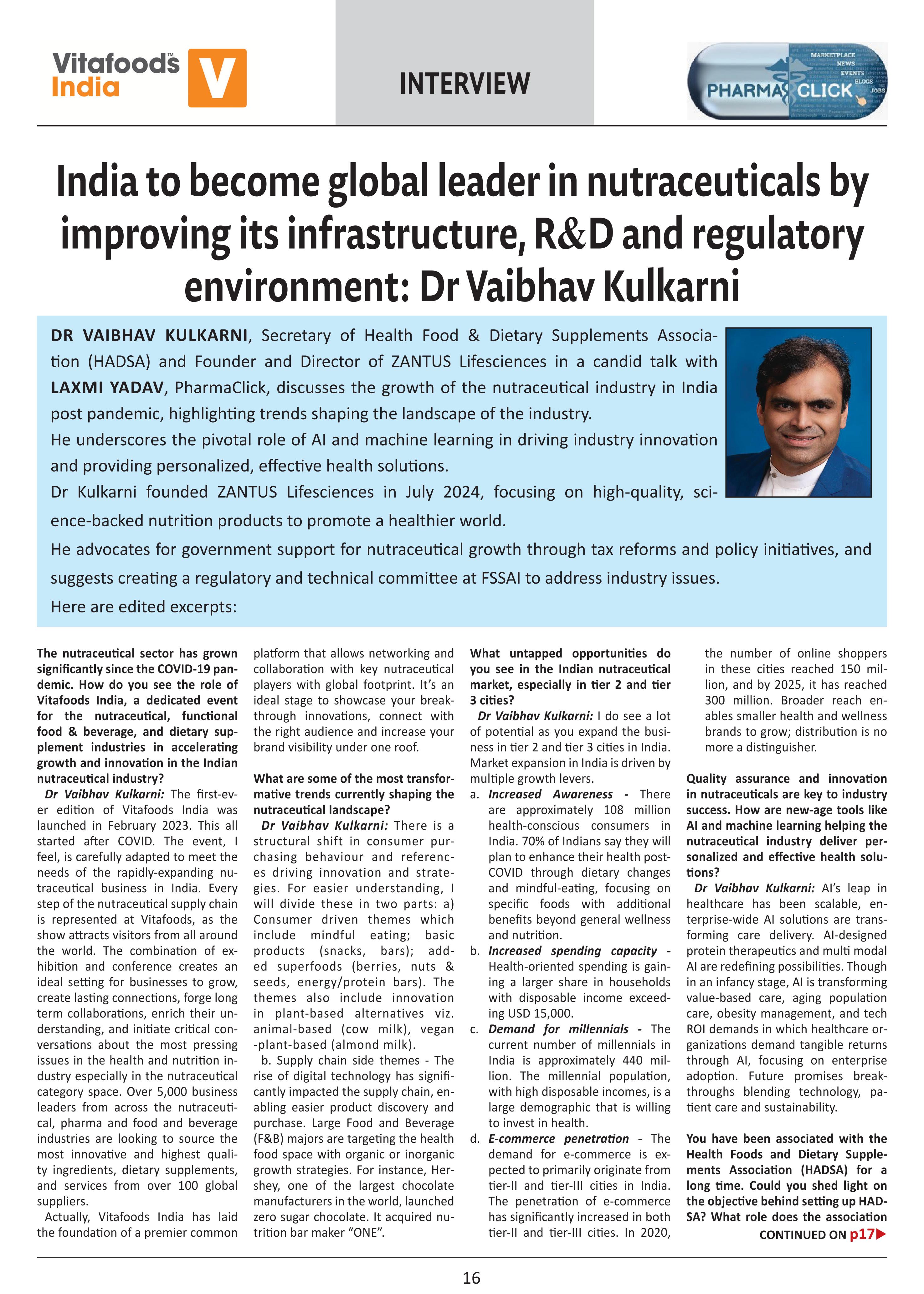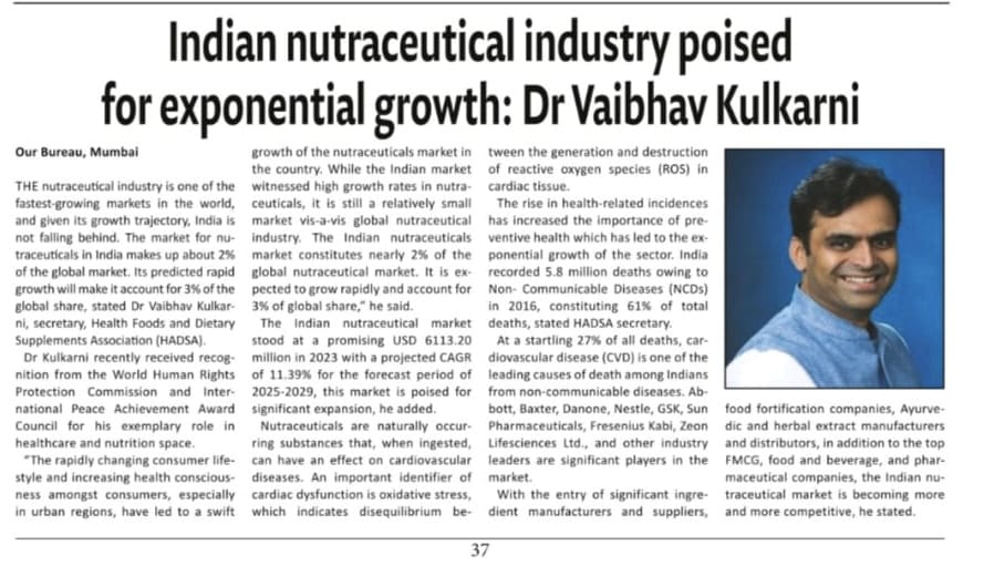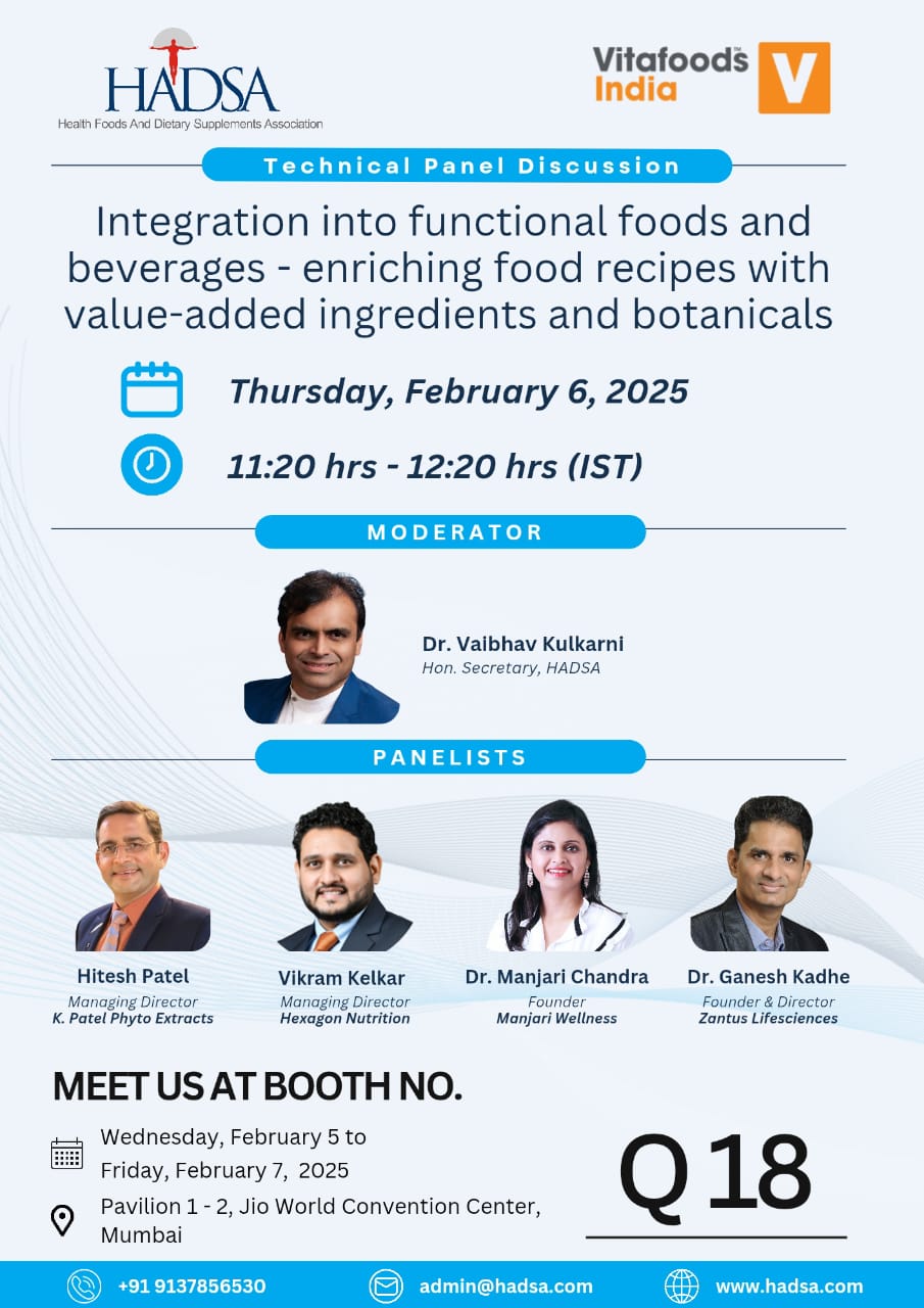 HADSA is partnering with Informa Markets as the Association Partner at Vitafoods 2025 to be held at Pavilion 1-2, Jio World Convention Center, Mumbai from February 5 to 7 February 2025.